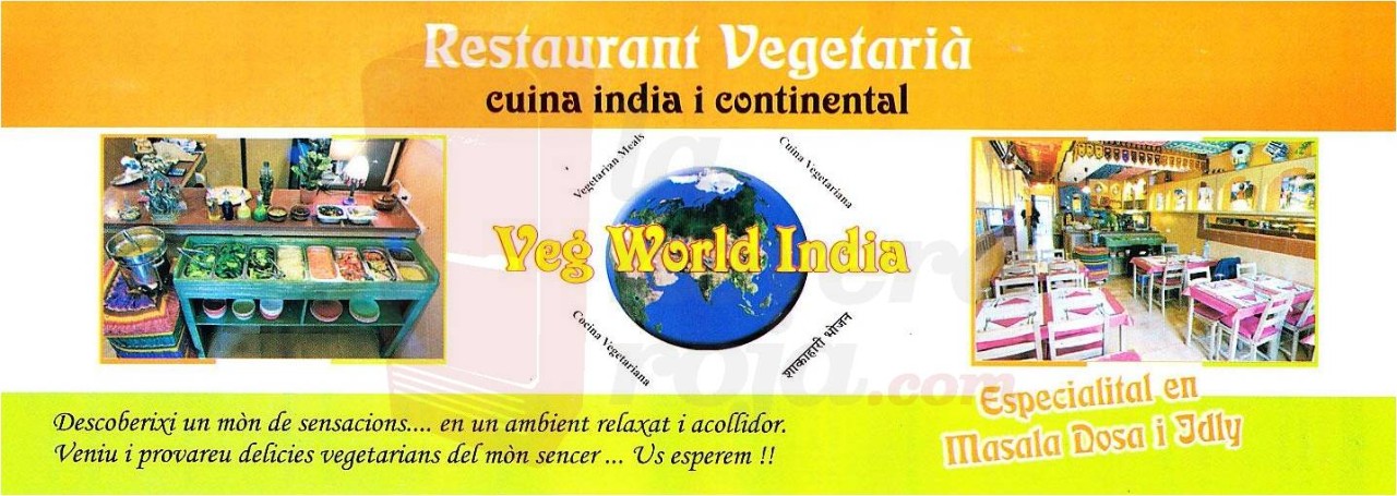 Comentario: Ubicado en el barrio de Gracia, Veg World India es un restaurante que basa su oferta en la cocina vegetariana vegana. Todos los platos que sirven son indios, al igual que el servicio y su decoración, fiel a la que impera en los restaurantes típicos de la zona india del Rajasthan. Al mediodía hay un menú que permite disfrutar de un buen bufet libre de ensaladas y un plato a elegir.